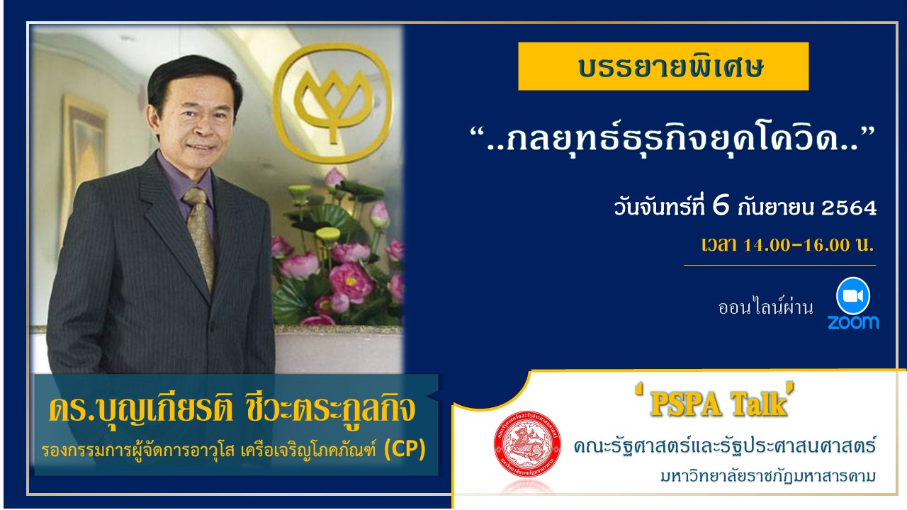 ขอเชิญชวนคณาจารย์ นักศึกษาและผู้สนใจร่วมฟัง PSPA Talk เรื่อง “กลยุทธ์ธุรกิจยุคโควิด-19 ” 2 กันยายน 2021 admin admin2 กันยายน 2021